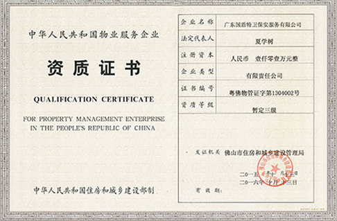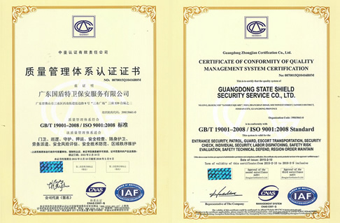 ISO9001管理體系認證,佛山市A級重合同守信用企業,廣東保安協會會員